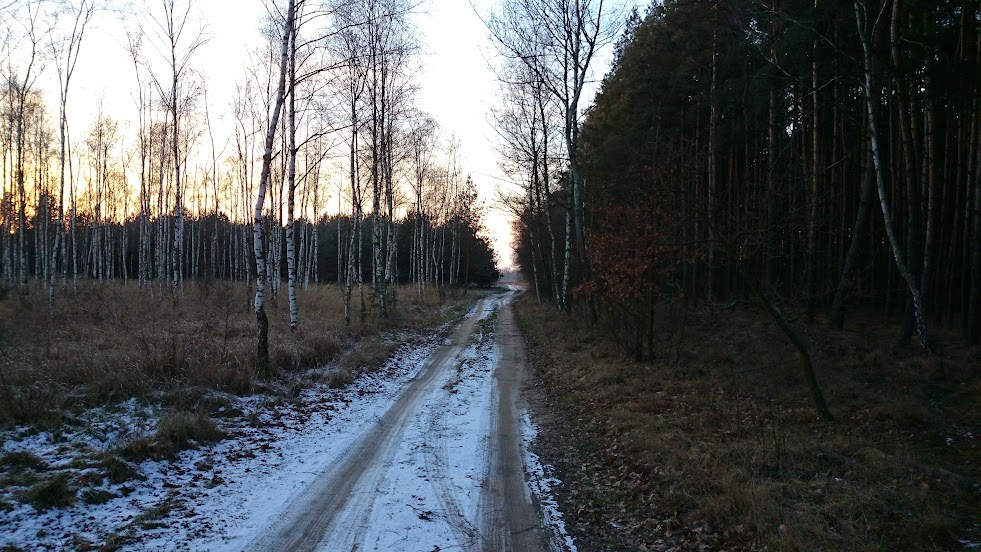 Wracam z powrotem na asfalt, którym ciągnę az do Nietrzanowa. Za Netrzanowem ponownie polne i leśne dukty lecz zasłonięte lasami, więc mogłem odpocząć od zimnego wiatru.